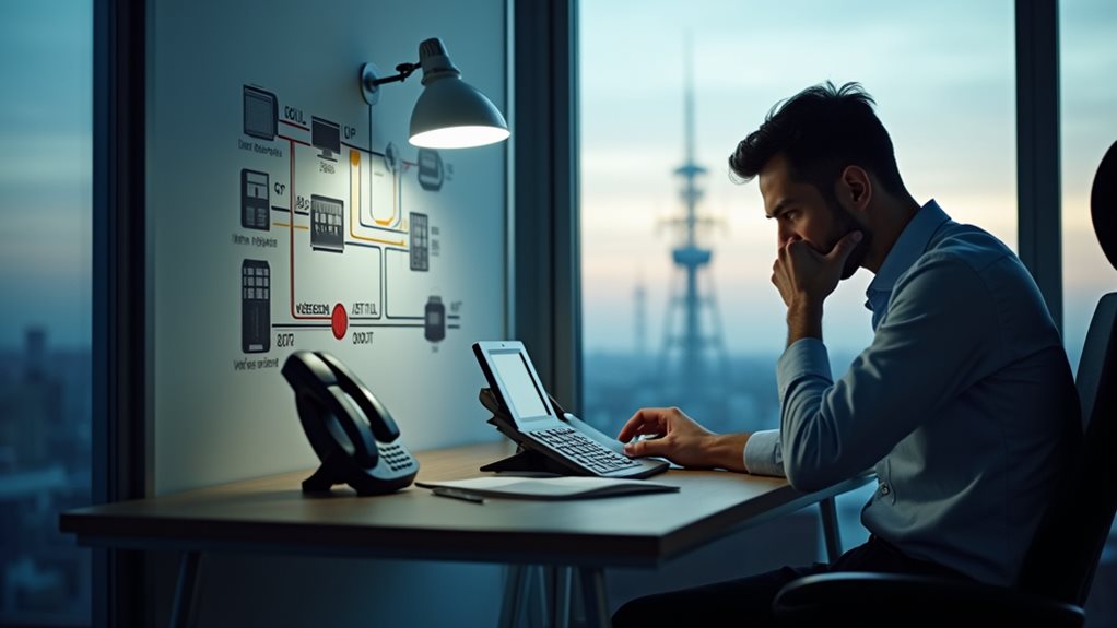 You’ll also need dedicated power backups to maintain operations during outages, including UPS systems and possibly generators for extended reliability. Consider implementing QoS (Quality of Service) settings to prioritize voice traffic over your local network. Remember that while these systems offer independence from internet service providers, they typically limit your calling scope to on-premise extensions or pre-configured external connections. Additionally, ensuring compatibility with SIP trunking is crucial for a seamless connection to external voice services if needed in the future.
