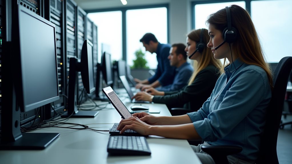 Setting up a VoIP call center requires careful planning across multiple areas. You’ll need reliable internet with sufficient bandwidth, quality hardware (IP phones or headsets), and appropriate server infrastructure. Select VoIP software that integrates with your existing tools, implement effective call routing systems, and establish robust security protocols. Don’t overlook agent training and performance monitoring capabilities. Proper infrastructure planning prevents quality issues while allowing for future scalability as your operation grows.